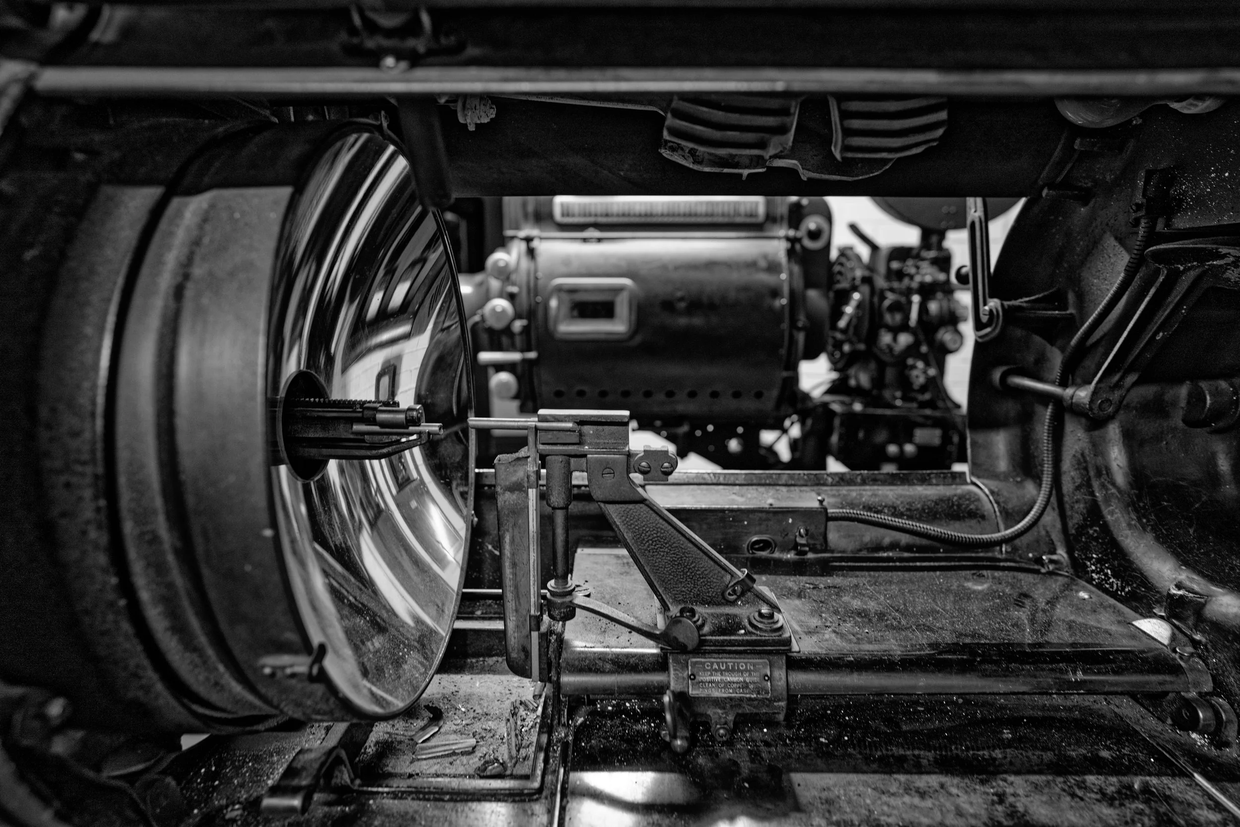 Bei dem vorliegenden Objekt handelt es sich um eine antike Bogenlampe, die einst für Kinovorführungen verwendet wurde.