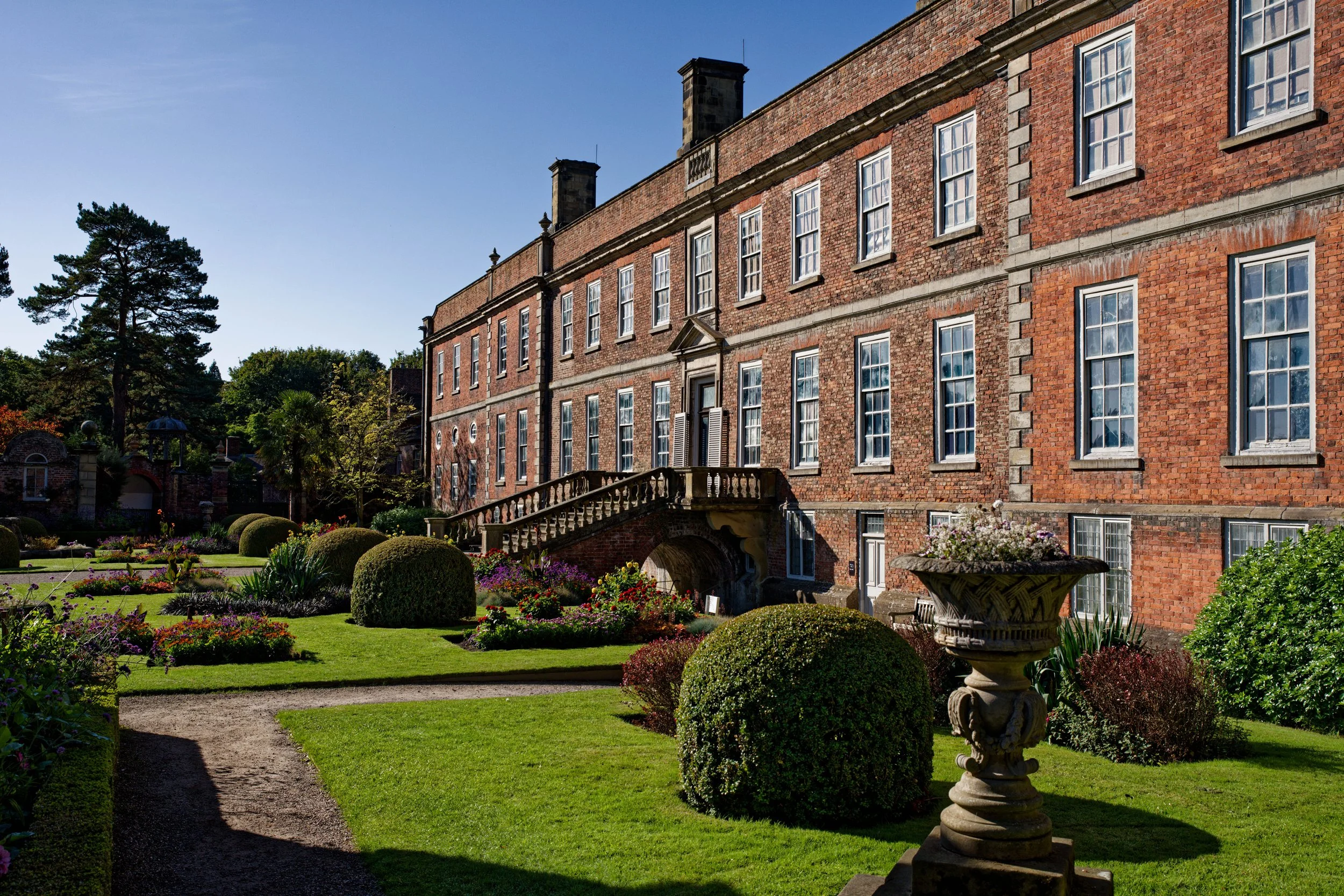 Das Anwesen "Erddig" ist ein historisches Herrschaftshaus, das von einem gepflegten Garten umgeben ist.
